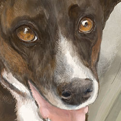 A gift created for my wife, in the style of a specific artist that she appreciated on Instagram, but based on our furbabies.