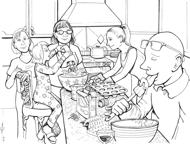 This was a personal image of family members enjoying some time making cupcakes together.