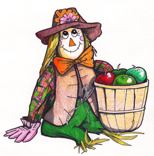 Scarecrow design that I used as part of a fall themed cartooning class that I was teaching for adults at a local paper store. This was an example for the students of the sort of things that we would be creating.