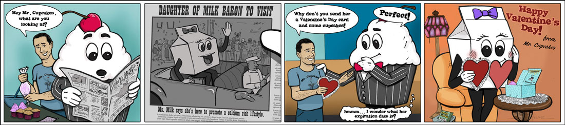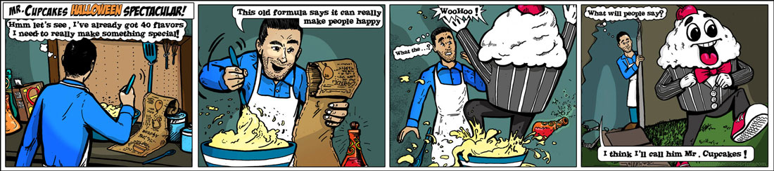 Series strip request for a cupcake business’s foray into a comic self promotion.