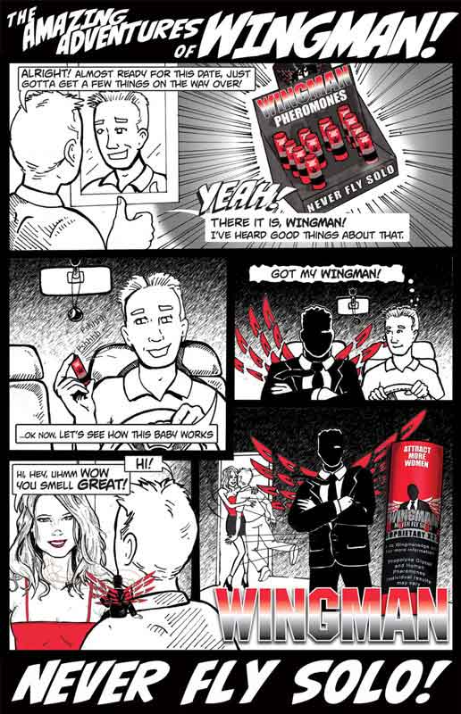 Comic request from a pheromone company to highlight the attactive power of their product. To my knowledge this was never used.