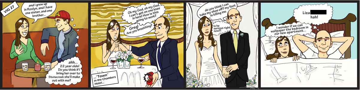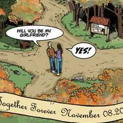 Comic request from the woman in the strip, who wanted to present the quaint and whimsical manner of their proposal.
